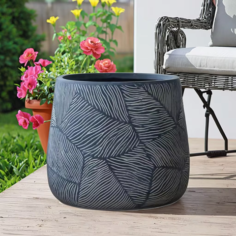 2025 Popular High Quality Large Black Fiber Clay Cylinder Bensai Pots Home and Garden Cute Flower Pot