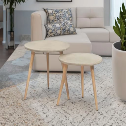 Bàn cà phê tròn hiện đại với chân gỗ thông trang trí cho phòng khách sân vườn hoặc nhà bếp nội thất nhà